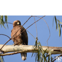 Morphological characteristics: 45-53 cm length and 100-121 cm wingspan. A small eagle similar to Common Buzzard B. buteo in size and build, but distinguished by longer tail and narrower head, tail, and wings. Sexes similar (female slightly larger) with no seasonal variation. Identification hampered by occurrence of several morphs. Adults of all morphs show brown upperparts with narrow white U-mark on upper tail-coverts, paler cap contrasting with darker face, white spot on leading edge of wing near body (‘head-lights’), pale bar across median upper wing-coverts, light panel on spread wing formed by pale innermost primaries, feathered legs , and two distinct white spots at base of neck. Pale morph has white underparts and under wing-coverts, with scattered dark spots, contrasting sharply with dark flight-feathers. Dark morph has blackbrown underparts. Juvenile like adult, but separable by eye colour: yellow to light brown in adult, darker brown in juvenile.